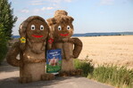 Sieben Stroh-Pärchen und zwei große Schlepper aus Stroh hat der oberschwäbische Baura-Club Birkenhard rund um Stuttgart aufgebaut. Sie werden als "Vorboten" des Landwirtschaftlichen Hauptfestes die Autofahrer neugierig machen.