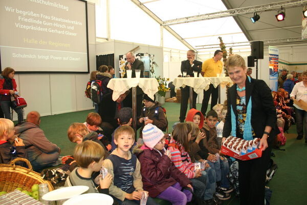 Am Mittwoch, 29. September war Weltschulmilchtag. Klar, dass dem auf dem Landwirtschaftlichen Hauptfest eine Aktion gewidmet wurde. LBV-Vizepräsident Gerhard Glaser und Staatssekretärin Friedlinde Gurr-Hirsch machten in der Halle der Regionen auf die Vorzüge der Milch als Pausengetränk aufmerksam. Da der Umgang damit logistisch unkomplizierter geworden ist als es früher der Fall war, sehen sie Chancen für eine Wiederbelebung des täglichen Milchangebotes in Schulen.