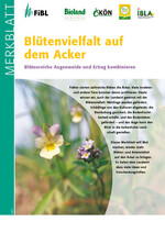 Früher zierten zahlreiche Blüten die Äcker. Heute sind die Äcker weitgehend blütenarm. Damit fehlt den Blütenbesuchern die Nahrungsquelle und den Landwirten die Blütenbestäuber. Blütenvielfalt bietet darüber hinaus noch viele weitere Vorteile - auch für den Landwirt. Das Merkblatt will Mut machen, wieder mehr Blüten- und Artenvielfalt auf den Acker zu bringen. Es liefert dem Landwirt dazu viele Ideen und Entscheidungshilfen. Birgit Petersen: Blütenvielfalt auf dem Acker. FiBL, KÖN, Bioland Beratung, Bio Austria, IBLA, 2011, 12 Seiten, Bestellnr. 1557, ISBN 978-3-934239-41-8, 5 Euro Erhältlich im FiBL-Shop unter https://www.fibl-shop.org/shop/show.php?sprache=DE&art=1557