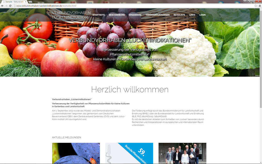 Zur Halbzeit des Projekts ist die Website www.verbundvorhaben-lueckenindikationen.de gestartet. Das Verbundvorhaben Lückenindikationen dient zur Verbesserung der Verfügbarkeit von Pflanzenschutzmitteln für kleine Kulturen in Gartenbau und Landwirtschaft.