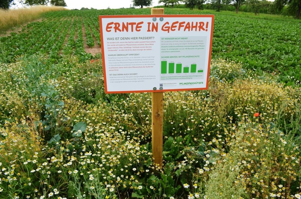 „Schau ins Feld!“ demonstriert die Konsequenzen eines Landbaus ohne Pflanzenschutz auf anschauliche Art dort, wo sie sichtbar werden – direkt auf den Feldern. Dafür legen die teilnehmenden Landwirte auf ihren Äckern gut sichtbar sogenannte Nullparzellen an, also Bereiche, in denen sie auf jede Pflanzenschutzanwendung verzichten. Im vergangenen Jahr nahmen rund 200 engagierte Landwirte an der Aktion teil und legten bundesweit 300 Schaufelder an.