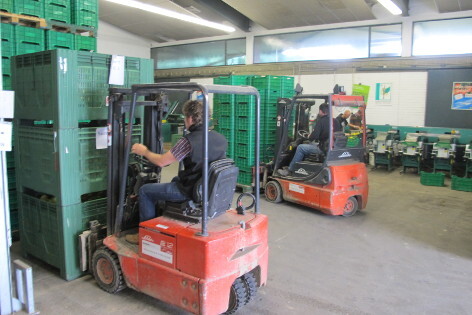 Bevor eingestapelt wird, sollte der Betonboden des Lagerraumes bereits die gewünschte Einlagerungstemperatur und eine völlige Wassersättigung aufweisen. Deshalb muss die Kühlung rechtzeitig eingeschaltet und der Boden mehrmals gewässert werden. Die Gaszusammensetzung in der Lagerluft muss sofort bei Beginn der Befüllung konsequent überwacht werden, da die Früchte besonders in der Einlagerungsphase sehr empfindlich sind und eine hohe Atmungsintensität aufweisen. Auch bei Teilbefüllungen kann es sehr schnell zu einer Überkonzentration an Kohlendioxid kommen, die die Früchte schädigt. Nur bei konsequenter Einhaltung der sortenspezifischen Lagerbedingungen kann mit einem zufriedenstellenden Auslagerergebnis gerechnet werden.
