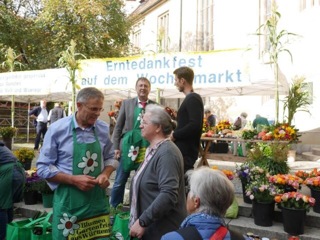 Eingangs hatte Stuttgarts Erster Bürgermeister Michael Föll an die „Brotkrawalle“ Ende des 18., Anfang des 19. Jahrhunderts erinnert. Die Vielfalt und Frische des Angebots auf den Wochenmärkten sei „keine Selbstverständlichkeit“. Sein Dank gilt Bauern und Gärtnern als Marktbeschicker, Kunden und allen Mitwirkenden des Erntedank-Wochenmarktes.