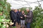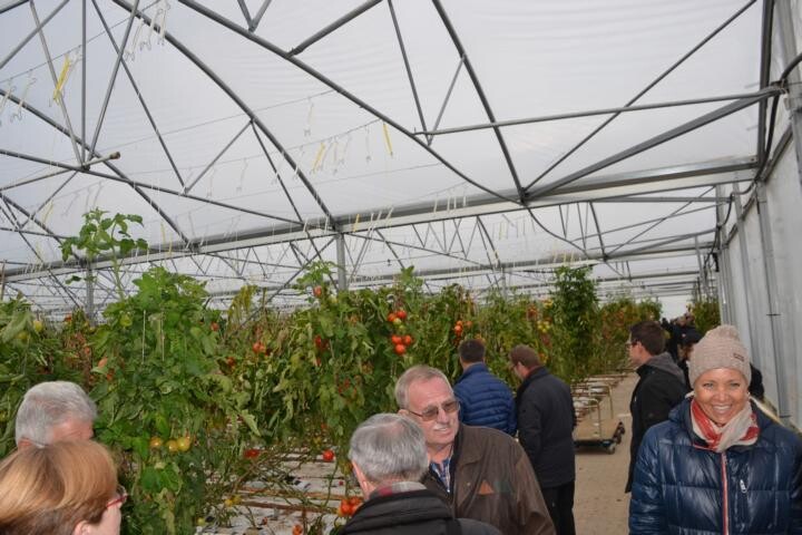 Der Betrieb von Manfred und Magdalena Kücherer startete auf einem 12 Ar großen Gelände - dank der Realteilung hatten die meisten Betriebe nur "schmale Riemen" zur Produktion zu Verfügung. Mittlerweile haben viele der häufig im Nebenerwerb geführte Betriebe aufgegeben. Die übrig gebliebenen Betriebe konnten ihre Flächen über Pachtflächen vergrößern. Der Bau von Glasgewächshausern wurde nicht erlaubt, so Kücherer. Nach seiner Berufsausbildung spezialisierte er den ursprünglichen gemischten Betrieb auf Gemüsebau. Als Alternative zu den Glasgewächshäusern baute er Richel-Folienhäuser mit neuer Technik. Zum Zeitpunkt des Besuchs hingen dort noch reife Tomaten. Zudem kann er auf 20 ha im Freiland wirtschaften. Das Sortiment umfasst Salate, Stangenbohnen, Zucchini und Feldsalat. Die Vermarktung läuft bei ihm über den Großmarkt Mannheim und direkt in die Gastronomie. Kopfzerbrechen bereiten die Regelungen zu den Saison-AK: "Gemüse muss halt 7 Tagen in der Woche geerntet werden, kleinere Betriebe können das kaum mehr organisieren." Das gesamte Freilandareal liegt seit diesem Jahr im Wasserschutzgebiet - wie er da noch wirtschaften kann, ist dem Vollblut-Gemüsegärtner momentan noch nicht klar.