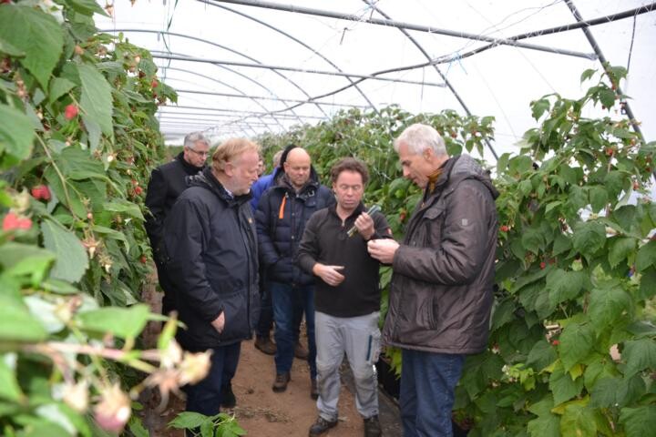 Die Rahmenbedingungen verbessern sich nicht, Stichwort Wasserschutzgebiet, die Zahl der Betriebe verringert sich. Der Betrieb Weigold führt die Gemüsekulturen Feldsalat und diverse Salate weiter und kultiviert daneben immer mehr Beerenobst, zum Beispiel Heidelbeeren oder Stachelbeeren. Himbeeren wachsen in den Foliengewächshäusern. Die Teilnehmer der Veranstaltung konnten sich versichern, dass die letzten Chargen bei guter Ausreife auch im November noch aromatisch schmeckten. Ein wichtiger Absatzweg ist die direkte Vermarktung.