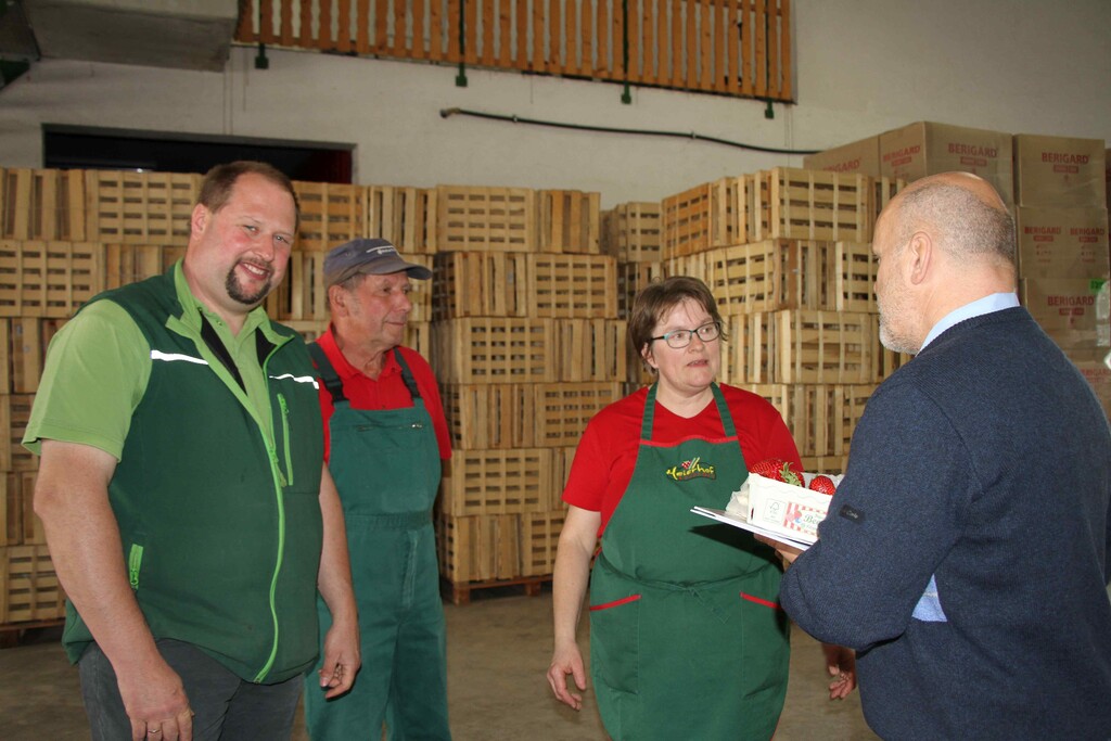 Gleiches gilt auch für den Erntezeitraum. Sollen die süßen Früchtchen nicht nur für zwei Wochen verfügbar sein, wie es die Natur vorsieht. Nur durch Fließ- und Strohverspätung gelingt es dem Sonderkulturanbauer die Saison bis in den Juli hinein zu verlängern. Das ist auch wichtig, damit sich die Erntehelfer aus Rumänien auf den 2500 km langen Weg machen. Maiers zahlen den vorgeschriebenen Stundenlohn - das ist attraktiv für die Helfer. Erste Betriebe haben nach der Erhöhung des Mindestlohns bereits die Konditionen verschärft: von Akkordlohn ist immer wieder zu hören. „Die Agrarbranche muss bei der nächsten Anpassung des Mindestlohns ausgenommen werden“, so die Betriebsleiter zu den Abgeordneten. „Setzen Sie sich bitte dafür ein! Wir sind sonst nicht länger konkurrenzfähig.“