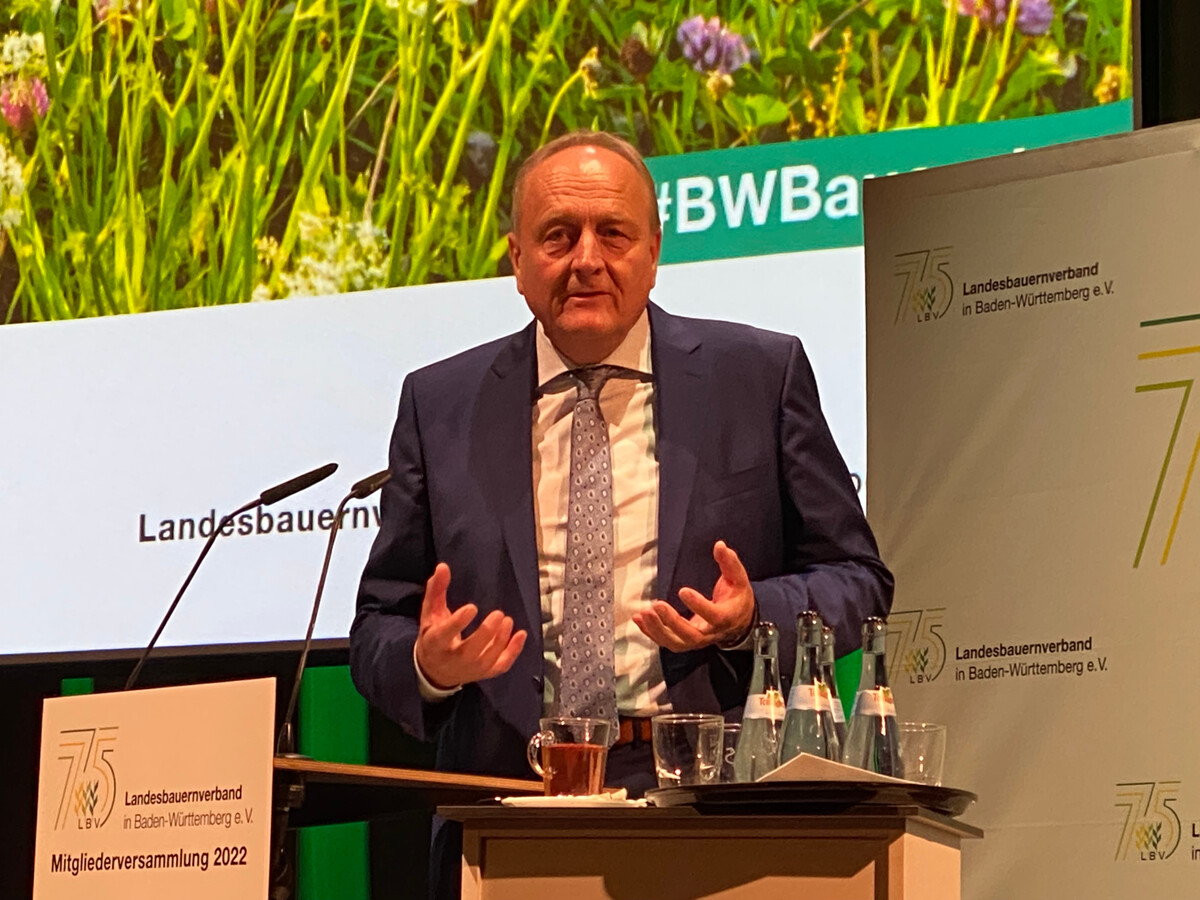 „Ohne die heimische Landwirtschaft wird sich die durch den Ukrainekrieg ausgelöste Versorgungskrise in einigen Regionen der Welt weiter zuspitzen. Wir baden-württembergischen Bauern können, wollen und müssen unseren Beitrag dazu leisten, diese Krise zu überwinden“, erklärt Joachim Rukwied, Präsident des Landesbauernverbandes (LBV), auf der LBV-Mitgliederversammlung am 22. Juni 2022 in der Schwabenlandhalle Fellbach.