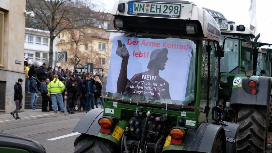Mit rund 1000 Traktoren und mindestens doppelt so vielen Teilnehmern protestierten am Donnerstag, den 21. Dezember, die Bäuerinnen und Bauern aus Baden-Württemberg lautstark gegen die Sparpläne der Bundesregierung. In der Kundgebung vor dem Landwirtschaftsministerium forderte unter anderem Jürgen Maurer, der Vizepräsident des Landesbauernverbandes, die vollständige Rücknahme der Steuererhöhungspläne. Die Vorschläge, die Agrardieselvergütung und die Kfz-Steuerbefreiung zu streichen, würde die heimische Landwirtschaft mit rund einer Milliarde Euro jährlich enorm belasten. Zu der Demonstration hatten alle landwirtschaftlichen Verbände gemeinsam aufgerufen.