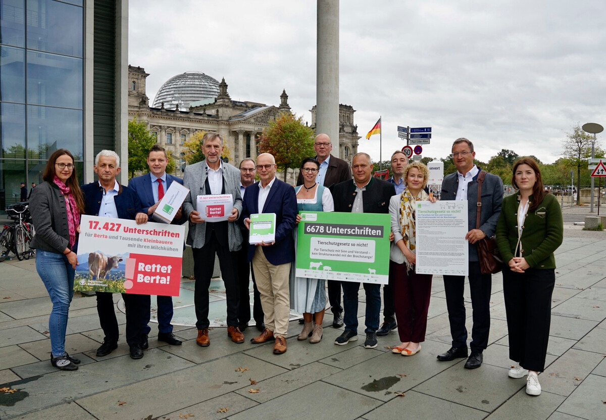 Der Deutsche Bauernverband übergibt gemeinsam mit Vertretern des Bayerischen Bauernverbandes 24.105 Unterschriften an den Ausschuss für Ernährung und Landwirtschaft gegen den in den Deutschen Bundestag eingebrachten Entwurf für eine Gesetzesnovelle des Tierschutzgesetzes.