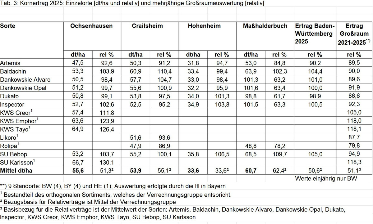 Die Prüfstandorte in Baden-Württemberg waren Crailsheim, Hohenheim, Maßhalderbuch und Ochsenhausen.