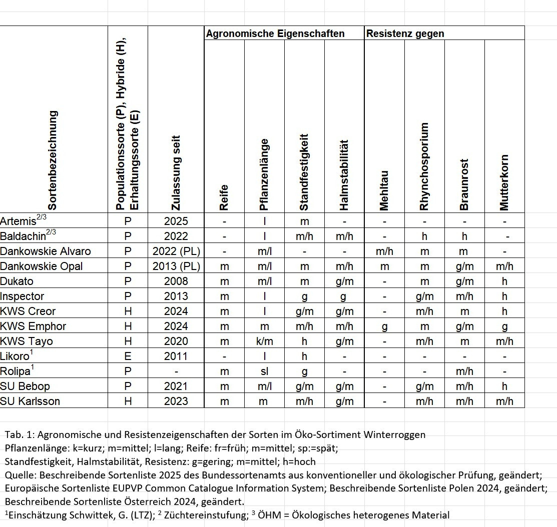 Dukato, vom Bundessortenamt im Ökolandbau geprüft: Lange Sorte mit mittlerer Standfestigkeit, gute Resistenzeigenschaften gegen Mutterkorn. Der Ertrag lag 2025 leicht unter dem orthogonalen Durchschnitt mit einem Relativertrag von 98,9 % über alle Standorte in BW. Züchtung/Vertrieb: Hybro Saatzucht GmbH & Co. KG/Saaten-Union.
