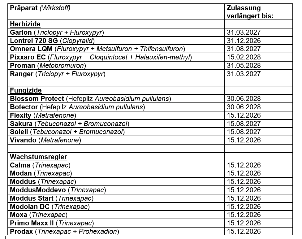 Die Zulassungen mehrerer Pflanzenschutzmittel wurden vorläufig verlängert.