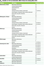 Auch wenn derzeit kaum gedüngt werden kann, so ist die Anzahl der Proben auf den Feldern stark angestiegen. Der landesweite Mittelwert von knapp 4900 beprobten Ackerbau-Standorten für den Nitrat-N-Gehalt beträgt 19 kg N/ha. Für die Winterungen lagen die Werte bei einer Bodentiefe von 0–90 cm wie in der vergangenen Woche bei 17 kg N/ha. Unter den geplanten Sommerungen (ohne Mais) wurde ein durchschnittlicher Nmin-Gehalt von 21 kg N/ha in einer Bodentiefe von 0–60 cm gemessen. Die Verteilung des Nitratstickstoffs in den einzelnen Schichten beträgt bei Winterungen 7 – 7 – 5 kg N/ha. Für Standorte, die eine durchwurzelbare Bodentiefe von mehr als 60 cm aufweisen, aber nur auf zwei Schichten beprobt wurden, sollten für die 3. Schicht folgende...