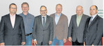 Die Wahlen beim Bauernverband Schwäbisch Hall-Hohenlohe-Rems haben eine Verjüngung der Gremien gebracht. Klaus Mugele (3. v. l.) bleibt mit hoher Stimmenzahl wiedergewählter Vorsitzender. Er wird künftig durch ein neues Stellvertreterteam ergänzt. Vorstände sind: für Schwäbisch Hall Marcus Nübel aus Engelhofen (Milcherzeuger, 2. v. l.); für Crailsheim Harald Gronbach aus Ingersheim (Milcherzeuger, 4. v. l.); für den Hohenlohekreis Jürgen Maurer aus Fessbach (Zuckerrüben und Schweinemast, ganz links) sowie für den Rems Murr Kreis der schon seit einem Jahr amtierende Andreas Schunter aus Erbstetten (Ferkelerzeuger, 2. v. r.). Rechts Geschäftsführer Helmut Bleher.