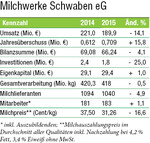 Die Milchwerke Schwaben eG erzielten 2015 einen Umsatz von 189,9 Mio. Euro. Das waren 31,1 Mio. Euro oder 14,1 Prozent weniger als im Vorjahr. Dennoch präsentierten die beiden Geschäftsführer Jakob Ramm und Karl Laible ein insgesamt solides Ergebnis. Künftig will man sich mit dem weiteren Ausbau der Markenprodukte noch besser vor dem Preisdruck am Milchmarkt schützen.