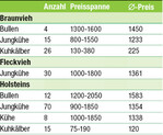 Braunvieh: Sehr gefragt waren auf dem Markt am 13. April die Zuchtbullen. Den Tageshöchstpreis erzielte der Körsieger, ein Hobbit-Sohn mit sehr guten genomischen Zuchtwerten von der Kramer GbR, Edelbeuren. Auch der Reservesieger, ein Vanpari-Sohn aus der Zucht der Familie Heckenberger, Hochdorf, überzeugte. An der Spitze der Jungkühe stand eine Viff-Tochter aus dem Betrieb Josef Hecht, Ochsenhausen. Eine leistungsstarke Jungkuh, eine Eastrog-Tochter mit 31,6 kg Milch, stellte Gebhard Heim, Tettnang, vor. Die Kuhkälber hielten ihren Preis. Fleckvieh: Wieder größer war das Angebot bei den Jungkühen. Zwei Töchter des Bullen Ippo stachen heraus. Die eine Jungkuh stellte der Betrieb Siegbert Blum, Walbertsweiler vor. Die zweite Ippo-Tochter...
