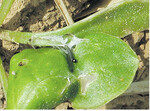 Telefonanrufe beim Verband baden-württembergischer Zuckerrübenanbauer weisen darauf hin, dass in diesem Frühjahr vermehrt der Schattenwickler in Zuckerrüben auftritt. Der Befall ist an verklebten Blättern zu erkennen, die von den Raupen des Schattenwicklers versponnen sind. Darin befinden sich die Raupen, die sich zwischen den kleinen Blättern verpuppen. Es wird aber dadurch kein Schaden verursacht und muss deshalb auch nicht bekämpft werden. Der Befall durch den Schattenwickler ist unter anderem an seinem weißen Gespinst zu erkennen ist. Foto: Wetzler