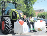 Vom Scheitel bis zur Sohle alles in Saatengrün –unter diesem Motto heiratete der Landwirt Stefan Häberle aus Setzingen bei Langenau seine Traumfrau Melanie aus dem Saarland. Neben den klassischen Hochzeitsfarben durfte bei dem begeisterten Claas-Fahrer das leuchtende Saatengrün nicht fehlen, die charakteristische Farbe des bekannten Landmaschinenherstellers. Doch der Farbtupfer steht nicht nur für Claas:Dasalthochdeutsche Verb „gruoen", von dem das heutige Wort Grün abstammt, steht für wachsen, sprießen oder gedeihen. Damit stimmt sich das Brautpaar passend auf die künftigen Jahre ein.Selbstverständlichwurde demnach auch das „Brautauto" gewählt.