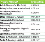 Das Bundeamt für Verbraucherschutz und Lebensmittelsicherheit hat die Zulassung von Pflanzenschutzmitteln verlängert. Die betroffenen Mittel finden Sie in nachstehende Tabellen.