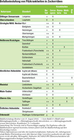Die Behandlungsschwelle liegt seit dem 15. August 2016 für die Erst- und Folgebehandlung bei 45 Prozent befallenen Blättern. Oberhalb der Schwelle rettet eine Behandlung vor Ertragsverlusten, unterhalb der Schwelle ist das Spritzen unwirtschaftlich. Das zeigen mehrjährige Versuche der süddeutschen Arbeitsgemeinschaften. Die Wartezeit von 26 Tagen bei den meisten Fungiziden beeinflusst zudem den Erntetermin. Die eingeteilten Ernte-Runden stehen seit dieser Woche im Rohstoffportal. Blattflecken häuften sich diese Woche an fast allen Standorten. Für das Westliche Hohenlohe ergeht ein erneuter Aufruf zur Kontrolle. Der letzte Warnaufruf liegt dort über drei Wochen zurück. Daher zeigt sich ein Anstieg der Blattflecken an zwei Standorten. Die...