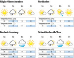 Der Samstag beginnt mild und leicht bedeckt. Im Laufe des Tages steigen die Temperaturen auf 31¿°C im Rheintal, 28¿°C am Mittleren Neckar und 23¿°C auf der Alb. Nachmittags bilden sich örtlich leichte Quellwolken. In der Nacht auf Sonntag ziehen mit zunehmendem Wind aus westlichen Richtungen Wolken auf, die am Sonntag verbreitet Gewitter und vereinzelt Unwetter bringen. Die Temperaturen erreichen kaum über 20¿°C in den Ebenen und noch 18¿°C auf der Alb und sinken im Tagesverlauf. Am Montag dreht der Wind auf Westen, bringt weiter Niederschläge bei kaum 20¿°C in den Ebenen und 12¿°C auf der Alb. Ab Dienstag wird es wieder freundlicher und etwas wärmer. | →Das detaillierte Agrarwetter für Ihre Region finden Sie unter www.bwagrar.de....