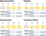 Der Samstag beginnt klar und mild. Im Laufe des Tages steigen die Temperaturen auf 28°C im Rheintal, 27°C am Mittleren Neckar und 22°C auf der Alb, nachmittags bilden sich mit leichtem Wind aus südlichen Richtungen leichte Quellwolken. Am Sonntag wird es stellenweise leicht bedeckt bis sonnig und warm, bei Temperaturen um 27°C in den Ebenen und 22°C auf der Alb. Zum Montag dreht der Wind leicht auf Südwesten und es wird weiter sonnig und warm mit maximalen Temperaturen bis 30°C. Am Dienstag steigen die Temperaturen nochmals leicht an und es wird sonnig bei leichtem Wind aus Süden, gegen Abend steigt dann das Gewitterrisiko. Die restliche Woche wird es etwas kühler, bleibt aber weiterhin schön. | →Das detaillierte Agrarwetter –...