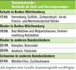 Am 1. September wurden 320 Kälber flott verkauft. Die Bullenkälberpreise lagen auf dem Niveau der Vormonate. Die Kuhkälber legten im Preis zu. Die 81 Vorderwälder-Kuhkälber erzielten 181 Euro bei 77 kg Gewicht. Die 34 Fleckvieh-Kuhkälber kamen bei 83 kg auf 303 Euro je Kalb. Den Tageshöchstpreis von 520 Euro erzielte eine Vollgas PS-Tochter vom Betrieb Ewald in Bräunlingen. Gefragt waren die 58 Vorderwälder-Bullenkälber. Je Kalb mit 74 kg Gewicht wurde netto 260 Euro angelegt (3,51 Euro/kg). Auch die 219 Fleckvieh-Bullenkälber wurden flott verkauft. Im Schnitt wurde je Kalb mit 77 kg 411 Euro bezahlt. Dies ergibt 5,35 Euro pro kg.