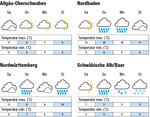Am Samstag überwiegt dichte Bewölkung bei schwachem Wind aus nördlichen Richtungen, die Temperaturen erreichen bis 13°C im Rheintal, am Bodensee und 7°C auf der Alb. In der Nacht auf Sonntag gibt es in Hochlagen den ersten Frost. Am Sonntag bringt leichter Nordwind weitere Wolken und einige Schauer, dazwischen gibt es vor allem im Westen sonnige Abschnitte, die Temperaturen erreichen noch 10°C in den Ebenen und 6°C auf der Alb, im Hochschwarzwald fallen einige Schneeschauer. Am Montag folgen weitere Schauer bei meist dichter Bewölkung und Temperaturen um 10°C in den Ebenen und 5°C auf der Alb. Am Dienstag ist mit mehr Ostwind zu rechnen, einigen Auflockerungen und leicht steigenden Temperaturen, in den folgenden Tagen mit etwas milderem...