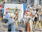 Sechs Landfrauengruppen bereicherten den Landesfestzug bei den Heimattagen in Bad Mergentheim im September. Aus dem badischen Verbandsgebiet nahm die Trachtengruppe aus dem Landfrauenverein Gondelsheim teil – vorne rechts Ortsvorsitzende Georgia Willy. Aus dem Main-Tauber-Kreis wirkte die Mörike-Gruppe aus dem Landfrauenverein Wermutshausen mit. Die Landfrauen aus Stuppach beteiligten sich in der örtlichen Gruppe „Glaubt & lebt" mit dem Motivwagen der Stuppacher Madonna. Darüber hinaus war der KreisLandfrauenverband Geislingen mit einem Hochzeitszug um 1900 vertreten, die Trachtentanzgruppe des Landfrauenvereins Weid-ach und der Landfrauenverein Gammelsfeld mit Alltags- und Festtagstrachten.