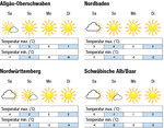Am Samstag löst sich der Hochnebel nur in Hochlagen und gebietsweise am Nachmittag bei leichtem Nordostwind, die Temperaturen erreichen 5°C im Breisgau, 3°C am mittleren Neckar und bis 0°C auf der Alb. Am Sonntag verstärkt sich der Wind aus Osten, mit teils stürmischen Böen in den Hochlagen und löst den Hochnebel meist bis nachmittags bei Temperaturen bis 5°C im Breisgau, 3°C im nördlichen Rheintal und -1°C auf der Alb. Am Montag lässt der stark böige Wind aus Osten langsam etwas nach, die Temperaturen erreichen 3 °C in den Ebenen und 1°C auf der Alb. Zum Dienstag lässt der Wind nach und es wird sonnig bei weiterhin frostigen Temperaturen. Die folgenden Tage bleiben kalt und trocken und in den Ebenen bildet sich zunehmend Hochnebel. |...