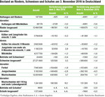 Zum Stichtag 3. November 2016 wurden laut Statistischem Bundesamt in Deutschland nach vorläufigen Zahlen rund 27,3 Millionen (Mio.) Schweine gehalten. Gegenüber Mai 2016 ist der Bestand leicht um 0,5 Prozent oder rund 125.500 Tiere gestiegen. Der seit November 2014 andauernde Rückgang der Schweinebestände ist vorerst gestoppt. Der leichte Anstieg des Schweinebestands geht auf den starken Zuwachs von 3,7 Prozent bei Mastschweinen zurück. Der Bestand stieg im letzten halben Jahr von rund 11,8 Mio. auf 12,2 Mio. Tiere (+ 436.900). Gut 40 Prozent des Zuwachses (190.300 Tiere) waren Mastschweine mit 110 Kilo oder mehr Lebendgewicht. Dagegen schrumpften die Bestände an Ferkeln und Jungschweinen im gleichen Zeitraum (siehe Tabelle). Zum Stichtag...