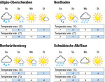 Am Samstag bringt auffrischender Wind aus West mit Sturmböen in Hochlagen wiederholt Schauer, die bis am Abend auch in den Ebenen in Schnee übergehen. Die Temperaturen erreichen noch bis 7°C im Rheintal, in Hochlagen kaum 0°C und die Nullgradgrenze sinkt bis nachts auf 200 Meter Höhe. Am Sonntag treibt frischer Westwind einzelne Wolkenfelder vorbei, vereinzelt gibt es noch leichte Schauer, meist als Schnee. Die Temperaturen erreichen bis 6°C im Rheintal, 2°C am Bodensee und im Neckarraum und -2°C auf der Alb. Am Montag dreht der frische Wind voraussichtlich auf Süd und bringt zeitweise Wolkenfelder mit Schauern, meist als Schnee, bei Temperaturen bis 4°C im Rheintal und 0°C auf der Alb. Am Dienstag dreht der Wind auf Nord, es klart auf...