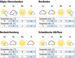 Eine sehr milde Woche brachte Rekordtemperaturen und keinen Niederschlag. Am Samstag bringt starker Wind aus West anfänglich Schauer, dann einen Wechsel von Wolken und Sonne, die Temperaturen erreichen bis 14¿°C im Rheintal, 12¿°C am Bodensee, 8¿°C auf der Alb und 0 bis 4¿°C auf dem Feldberg. Am Sonntag bringt der Westwind in Hochlagen starke Böen und verbreitet Wolken mit Schauern bei Temperaturen bis 15¿°C im Rheintal und 12¿°C am Bodensee. Im Neckarraum und auf der Alb werden 7¿°C erreicht. Am Montag lässt der Westwind nach. Später scheint meist die Sonne bei Temperaturen bis 16¿°C im Rheintal und 13¿°C auf der Alb. Am Dienstag folgen weitere Wolken mit etwas Regen und die Temperaturen erreichen maximal 13¿°C, auf der Alb etwa 10¿°C....