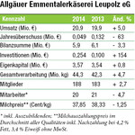 Trotz eines schwierigen Käsejahres konnte die Allgäuer Emmentaler Molkerei Leupolz ihren Umsatz 2014 um fünf Prozent gegenüber dem Vorjahr steigern. Die Preise für konventionelle Milch blieben wegen der schwierigen Verwertung hinter den Erwartungen zurück. Gut entwickelt haben sich die Preise für Biomilch.