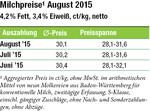 Im August blieben die Milchpreise in Baden-Württemberg gegenüber Juli fast unverändert. Im arithmetischen Mittel sind sie leicht um 0,1 Cent auf 30,1 Cent gefallen. Das ist ein vergleichsweise stabiler Preis, wenn man die Auszahlungspreise vieler anderer Molkereien betrachtet, die im August deutlich niedriger auszahlten, bis auf 23,5 Cent in Norddeutschland. Der Kieler Rohstoffwert ist im August auf 22,1 Cent gesunken, ein Preisniveau, das es seit Jahren so nicht mehr gegeben hat. In der Analyse dieser Preismisere sind sich die Fachleute einig: Der Milchpreis in Baden-Württemberg hängt am globalen Markt. Die großen Exportländer haben im ersten Halbjahr 2015 deutlich mehr Milch erzeugt als 2014 und 2013. Auch in der EU-28 steht mehr Milch...