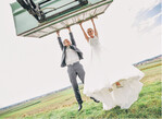 Der schönste Tag des Lebens, die Hochzeit, soll ewig in Erinnerung bleiben. Für Brautpaare, die einen Bezug zur Landwirtschaft haben, bieten sich da diverse Fotomotive an: Von Pferdekutschen über zu Brautautos umfunktionierte Schlepper oder Mähdrescher bis hin zur Lieblingskuh als Gefährtin auf der Weide. Wie Anja und Christian aus der Nähe von Ulm kann man aber auch an der Frontladerschaufel hängend abheben, die Aussicht auf den Hafen der Ehe genießen und Höhenluft schnuppern. Lässt dabei die Kraft der Braut nach, ist ein Grasfleck auf dem Kleid leider unvermeidbar.