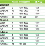 Die Zuchtviehauktion der Rinderunion Baden-Württemberg (RBW) am 9. Septemberg in Bad Waldsee war gut besucht. Braunvieh: An der Spitze der Zuchtbullen lief ein genomisch untersuchter Vassli-Sohn aus der Zucht der Rehm GbR, Ochsenhausen. Hohe genomische Zahlen und ein fehlerfreies Exterieur machten ihn zum Körsieger. Reservesieger wurde ein gut entwickelter Vivid-Sohn vom Zuchtbetrieb Heckenberger aus Hochdorf. Zügig kamen die Gebote bei den Braunvieh-Jungkühen. Herausragend eine Hulk-Tochter aus dem Betrieb von Jürgen Held, Donaustetten. Diese milchtypische Jungkuh erlöste 1800 Euro. Ein Highlight kam aus dem Zuchtbetrieb Dietmar Reisch, Tannheim-Arlach. Die Huray-Tochter leistete drei Wochen nach der Kalbung bereits 39,8 kg Milch. Dafür...