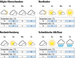 Nach einigen Niederschlägen kehren herbstliche Bedingungen ein. Am Samstag frischt der Nordwind auf und lockert die tiefe Bewölkung gebietsweise auf, die Temperaturen steigen bis 16°C im Rhein- und Neckartal, 11°C auf der Alb und 4°C auf dem Feldberg. Zum Sonntag dreht der böige Wind auf Ost, die Sonne erscheint im Tagesverlauf und die Temperaturen erreichen in den Ebenen noch 15°C, auf der Alb bis 8°C und im Hochschwarzwald 2 bis 5°C. Zum Montag ist oberhalb von 800 Metern Nachtfrost möglich. Am Montag verdeckt hohe Bewölkung die Sonne, bei nachlassendem Ostwind und maximal 13°C in den Ebenen und 7°C auf der Alb. Am Dienstag frischt der Ostwind wieder auf, es wechseln sonnige Abschnitte und tiefe Bewölkung bei Temperaturen bis 13°C am...