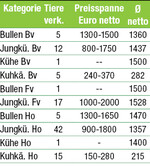 Bei der RBW-Zuchtviehauktion am 12. August in Bad Waldsee kamen die Interessenten bei tropischer Hitze ins Schwitzen. Braunvieh: Zwei Hobbit-Söhne aus der Zucht von Konrad Gaum, Schwendi, und Peter Rohmer, Oberopfingen, führten die Spitze der Zuchtbullen an. Beide Bullen waren bestens entwickelt und sehr korrekt. Begehrt war auch ein genomisch getesteter Himalya-Sohn aus der Zucht von Familie Heckenberger, Hochdorf. Flott kamen die Gebote bei den Jungkühen. Herausragend waren zwei Payssli-Töchter aus den Betrieben Hubert Schupp, Bodnegg, und Gebhard Heim, Tettnang. Beide Kühe zeigten ein fehlerfreies Exterieur mit hoher Milchleistung. Ebenfalls sehr gefragt war eine Highway-Tochter aus dem Betrieb Erwin Bühler, Hittisweiler. Die kleine...