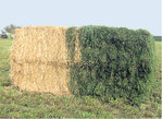 Angewelktes Grünfutter und Stroh in einem Ballen als mutige Einstiegsvariante einer Mischration? Nicht wirklich, sondern das ungewollte Ergebnis einer Maschinenvorführung. Hier wurde die Presse zuerst im Gras und dann im Stroh eingesetzt. Im Eifer des Gefechts übersah der Fahrer beim Feldwechsel, dass der Presskanal noch halb voll war.