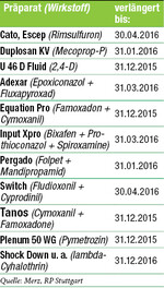 Das Bundesamt für Verbraucherschutz und Lebensmittelsicherheit (BVL) hat die Zulassung für folgende Pflanzenschutzmittel vorübergehend verlängert: