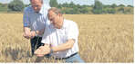 Die beginnende Getreideernte „lässt in Deutschland nur noch durchschnittliche Erntemengen erwarten", sagte der Präsident des Deutschen Bauernverbandes (DBV), Joachim Rukwied (r.), bei einem Pressegespräch zum Ernteauftakt gemeinsam mit Friedhelm Schneider (l.), Präsident des Hessischen Bauernverbandes. Im Frühjahr war es in vielen Gegenden zu trocken. Die DBV-Ertragsschätzung lässt eine Getreideernte von gut 47 (Vorjahr: 52) Mio. Tonnen erwarten. Damit würde die Getreideernte 2015 dem Mittelwert der Jahre 2009 bis 2014 von 46,8 Mio. Tonnen entsprechen.