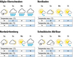 Die Trockenheit wurde durch ergiebigere Niederschläge seit Mittwoch nur etwas gemildert. Am Samstag bringt ein böiger Wind aus Süd bis West Wolken und Schauer und die Temperaturen erreichen etwa 25¿°C im Rhein- und Neckartal sowie am Bodensee, knapp 20¿°C auf der Alb und 13¿°C im Hochschwarzwald. Am Sonntag klart es von Westen her auf, es bleibt meist trocken und die Temperaturen erreichen bis 25¿°C in den Ebenen und bis 15¿°C in Hochlagen. Am Montag frischt der Wind aus südwestlichen Richtungen wieder auf und bringt weitere Schauer. Die Temperaturen erreichen nur in den Ebenen deutlich über 20¿°C, auf der Alb nur 15¿°C. Am Dienstag ist vermehrt mit Schauern und Temperaturen meist unter 20¿°C zu rechnen. | →Mehr Wetter im Internet...