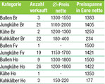 Bei der Auktion am 8. Juli in Bad Waldsee wurde qualitätsbewusst eingekauft. Braunvieh: Körsieger wurde ein genomisch getesteter Vanpari-Sohn vom Betrieb Franz Steinhauser, Eberhardzell-Mittishaus. Den Tageshöchstpreis erzielte der Reservesieger, ein Jackson-Sohn von Jürgen Held, Ulm-Donaustetten, ebenfalls mit besten Werten. Bei den Jungkühen erlöste Franz-Josef Rembold, Dietenheim, für eine Viff-Tochter mit 2000 Euro den Tageshöchstpreis. Sie ging an einen Zuchtbetrieb ins Allgäu. Hoch in der Käufergunst stand eine Hulk-Tochter von Werner Frey, Rot an der Rot, die 1950 Euro erlöste. Eine weitere Hulk-Tochter brachte dem Betrieb Schöllhorn, Leutkirch-Reichenhofen, 1800 Euro. Bei den Kuhkälbern erzielte Martin Riß, Bad Wurzach-Dietmanns,...
