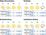 Die vergangene Woche brachte eine spürbare Abkühlung, Niederschläge und eine Erholung der Bodenwasservorräte, vor allem im Süden und in Hochlagen. Am Samstag ziehen Wolken auf, gebietsweise fallen Schauer, vereinzelt auch Gewitter, bei zeitweise frischem Wind und maximal 25°C im Rhein- und Neckartal und etwa 15°C auf der Alb. Am Sonntag erscheint die Sonne bei Temperaturen bis 28°C in den Ebenen und 22°C auf der Alb. Der Montag wird meist sonnig und die Temperaturen erreichen wieder über 30°C in den Ebenen und über 25°C auf der Alb. Am Dienstag erreichen die Temperaturen stellenweise 35°C und es gibt Gewitter. In der weiteren Woche nehmen die Temperaturen ab und die Gewitterneigung zu. | →Mehr Wetter im Internet unter...