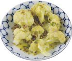 1 großer Blumenkohl 1 EL Gemüsebrühe, instant ½ TL Salz 80 g Walnuss- oder Haselnusskerne einige Zweige frischer Thymian 4 EL Olivenöl oder Rapsöl 1 – 2 EL weißer Balsamico-Essig 1 TL Salz frisch gemahlener schwarzer Pfeffer 1 Knoblauchzehe
