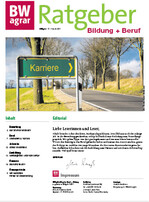 Schule beendet, Lehre absolviert, Studium abgeschlossen. Jetzt fehlt nur noch der richtige Job. Die Möglichkeiten sind vielfältig und es ist nicht einfach eine Entscheidung zu treffen. Im BWagrar-Ratgeber Bildung + Beruf der kommende Woche in Ihrer BWagrar beiliegt, schauen wir, wie man erfolgreich in den Beruf, startet. Beispielsweise mit einem erfolgreichen Bewerbungsgespräch. Ist die Bewerbung geschrieben, erfolgt hoffentlich die Einladung dazu. Wir geben Tipps, was dort gut ankommt und was man besser lassen sollte. Den Einstieg in den Beruf haben die vier Protagonisten unserer Karriere-Reportage schon gefunden. Sie erzählen, warum das, was sie machen, genau das Richtige ist und warum sie gerne in der Grünen Branche arbeiten. Außerdem...