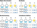 Nach einer wechselhaften Woche mit Frost in den höheren Lagen und ersten Gewittern sind die Bodenwasservorräte wieder gefüllt und die Kernobstbäume noch in Blüte. Am Samstag vertreibt der Ostwind die Wolken und die Temperaturen erreichen in den Flussebenen bis 15°¿C, auf der Alb etwa 10°¿C. Am Sonntag dreht der Wind auf West und es gibt wieder Regen bis in Hochlagen. Am Montag fallen nach kurzer Aufhellung wieder Schauer und es wird etwas wärmer. Am Dienstag könnten die Temperaturen über 20°¿C erreichen. Im weiteren Verlauf der Woche ist mit etwas beständigerem und frostfreiem Wetter zu rechnen. →Mehr Wetter im Internet unter www.bwagrar.de. Geben Sie oben rechts ihre Postleitzahl ein und Sie bekommen das detaillierte Agrarwetter...