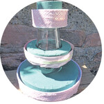 Material: Eine größere und eine kleinere Kunststoffschale (etwa 20 und 10 Zentimeter Durchmesser), ein Kranzring (Durchmesser 15 Zentimeter), zwei Gläser, Band verschiedener Breite und Blumen der Saison, Heißkleber Und so wird‘s gemacht: Die erste Etage besteht aus einer flachen Kunststoffschale mit Steckschwamm. Dieser muss gut mit Wasser vollgesaugt sein. Um die trockene Schale wird mit Hilfe von Heißkleber ein schönes breites Spitzenband geklebt. Als Abstandshalter dient ein konisches Glasgefäß, welches umgedreht leicht in den Steckschwamm gedrückt wird. Auf dieses Glas wird ein kleiner Steckring gelegt. Durch die konische Form des Glases bekommt er einen guten Halt. Auch er wird vorher umklebt, diesmal mit Band und zur Auflockerung...