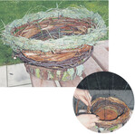 Material: eine Baumscheibe, Birkenzweige, Zweige von Wildem Wein, sonstiges Geäst oder Heu, Steckdraht, Wickeldraht, Heißklebepistole und ein Akkubohrer Und so wird‘s gemacht: Einfach und variantenreich herzustellen ist dieses Körbchen aus Naturmaterialien. Mit dem Akkubohrer werden am äußeren Rand der Baumscheibe, je nach Größe, mindestens zwölf bis sechzehn Löcher gebohrt. Der Bohrer sollte nicht viel dicker als der Steckdraht sein. Mit Hilfe der Heißklebepistole die Steckdrähte in den Löchern befestigen. An circa vier Steckdrähten wird am unteren Ende ein etwas längeres Stück Wickeldraht angebracht. Mit ihm werden die Zweige, die jetzt oberhalb der Scheibe um die Steckdrähte gewickelt werden, ab und zu stabilisiert. So können sie nicht...